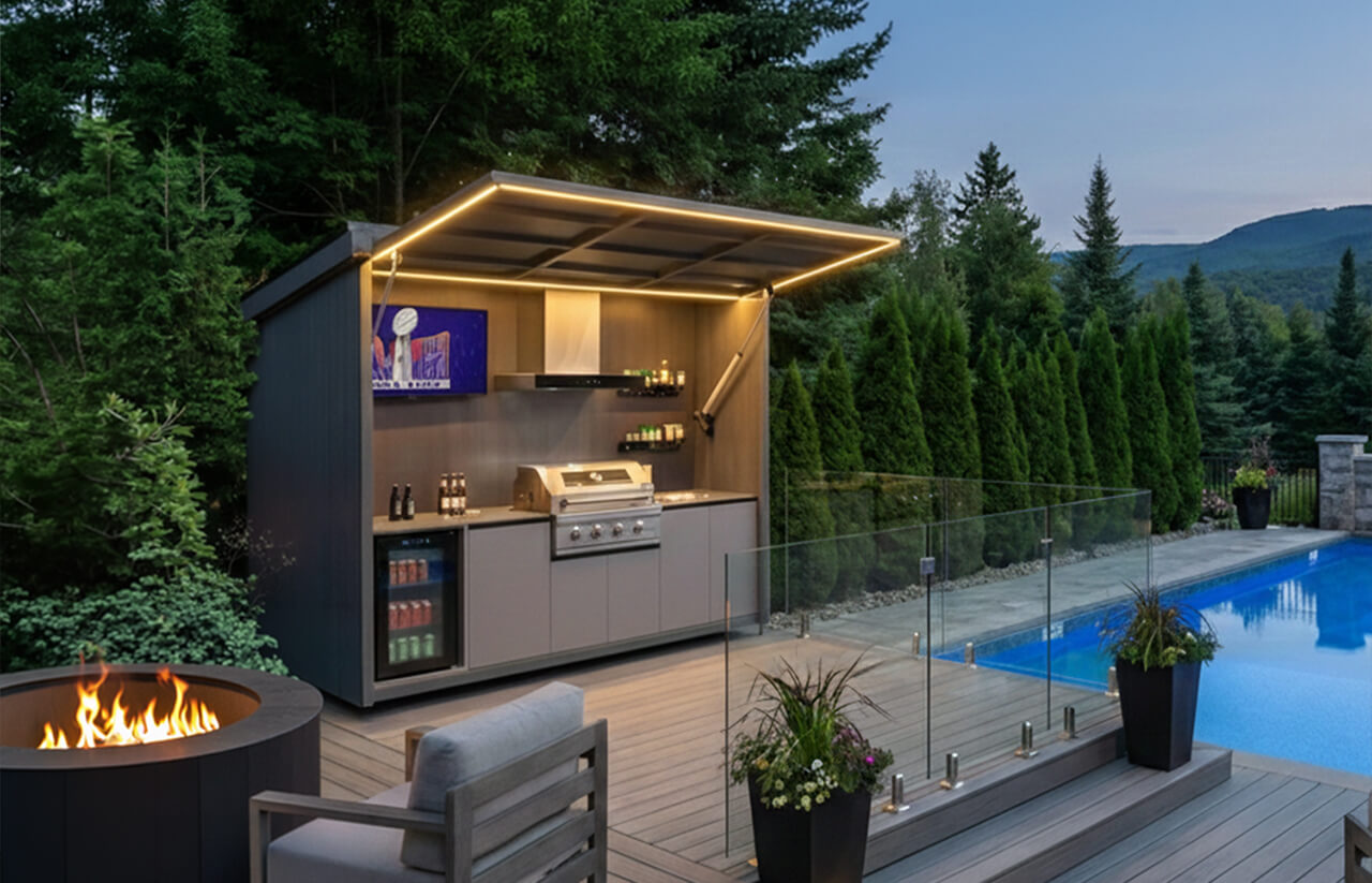 - Chauffe-terrasse et lumières DEL encastrées : Créent une ambiance chaleureuse et permettent une utilisation prolongée du solarium, même par temps plus frais.